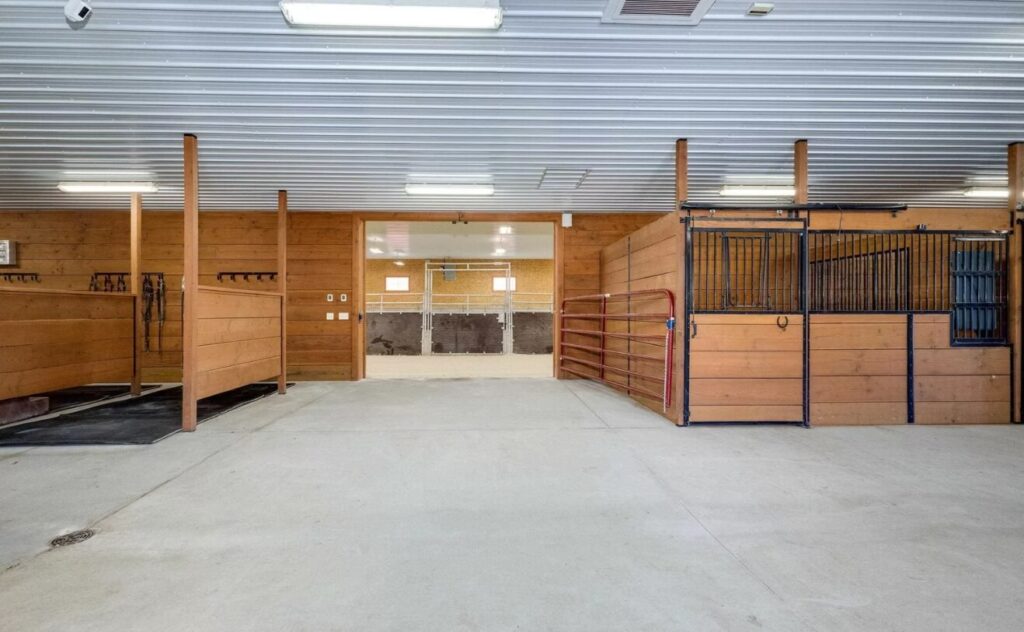 - 12-Stall Horse Barn: Equipped with automatic waterers and a tack room for seamless care.