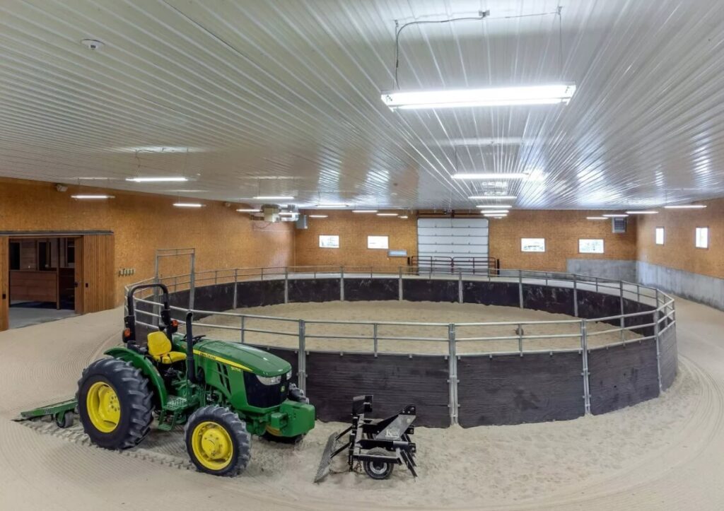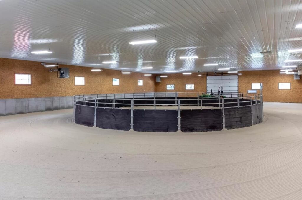 - Indoor Riding Arena: A heated 80×160 space with a 50-foot round pen for training.